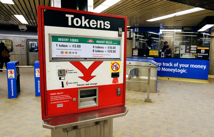 - Токен. Приобрести токены можно в автомате: один за 3 CAD или более 4 штуки за 10 CAD и т.д. Автоматы не принимают ничего кроме наличных, но выход есть - токены продают в магазинах Convenience Store, Shoppers Drug Mart. Кредитные карты VISA там принимают без проблем.