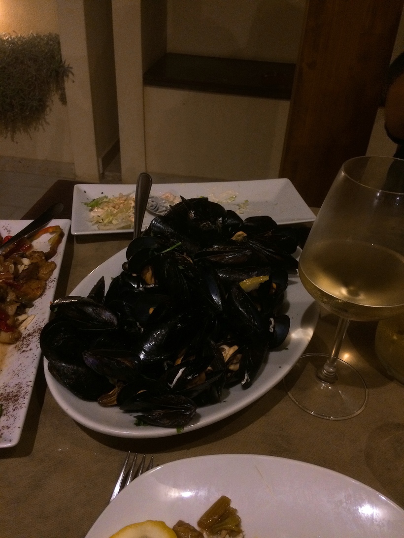 Здесь я впервые попробовала равиолли с лососем и фисташкой, пасту с рыбьей икрой и помидорами, всевозможные антипасты с морскими гадами и осталась неимоверно довольной!