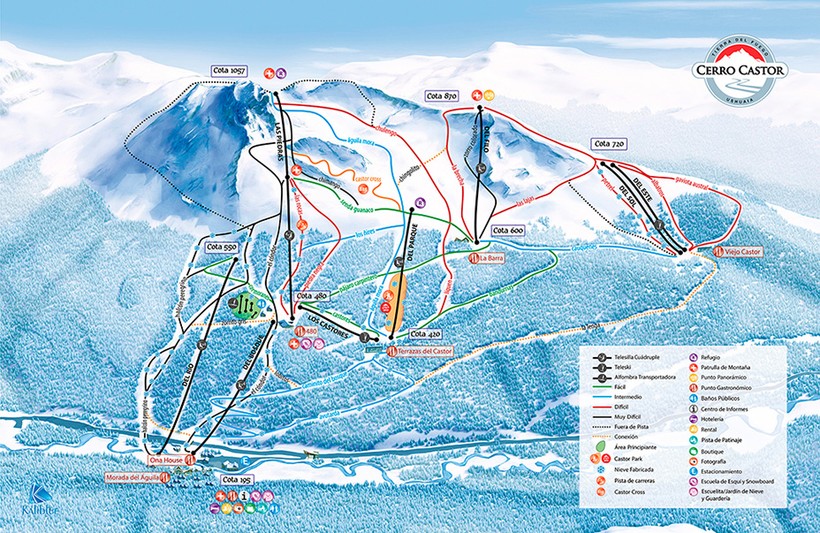 Благодаря климату, склоны Cerro Castor имеют прекрасное натуральное покрытие, кроме того имеются еще 18 снежных пушек. Средние температуры в катальный сезон между -5 и 5 градусов, очень комфортно.