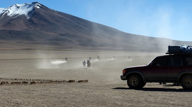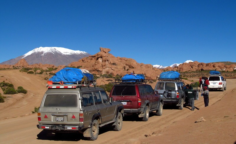 Начинается поездка по высокогорью с самого большого в мире солончака Уюни. Ехать до него недолго, но даже здесь на дорогах попадаются груды соли и по асфальту бегают стаи лам. Ламы и альпаки здесь повсюду, они одомашнены, причесаны и украшены кисточками на ушках. Ещё вдалеке, на вулканических склонах, можно заметить викуний, диких родственников лам. Они гуляют одни или семьями, с потомством. Местные экологи следят за тем, чтобы им не мешали туристы (в соседнем Чили следят более пристально, а в Боливии так, для галочки).