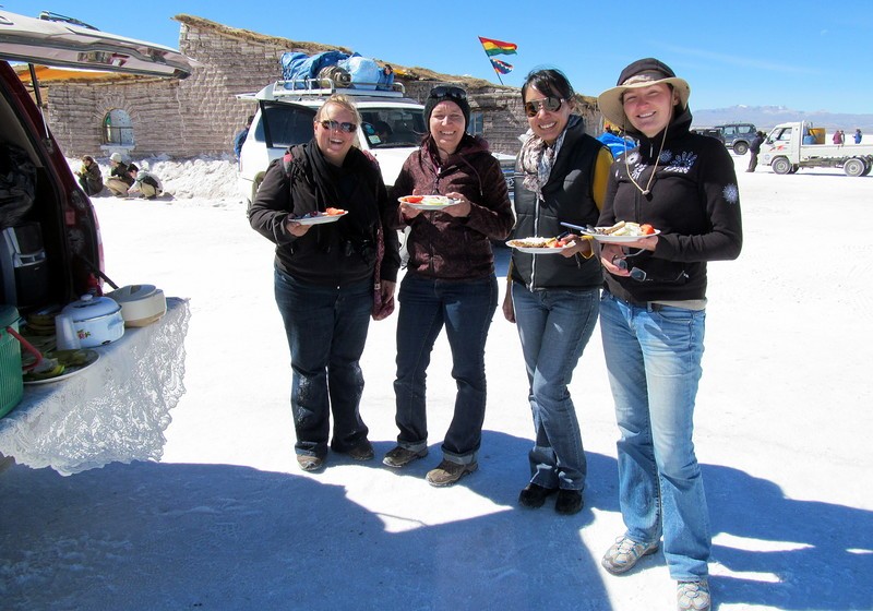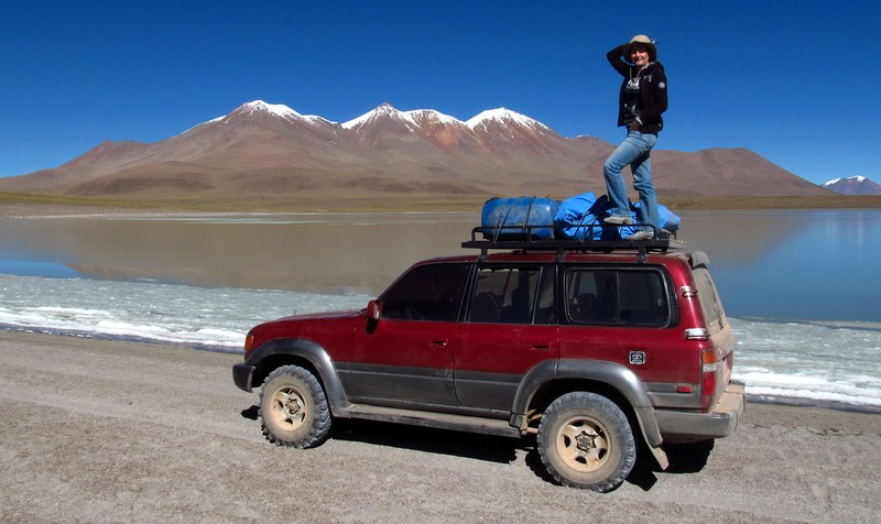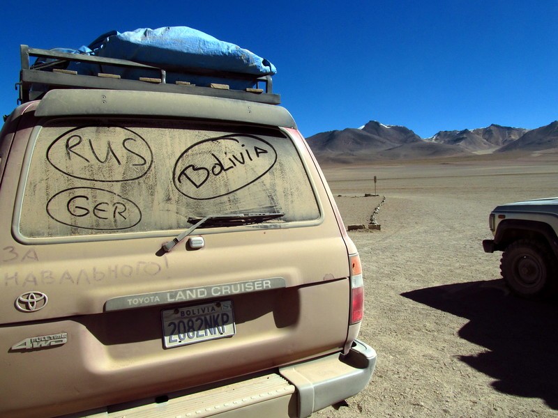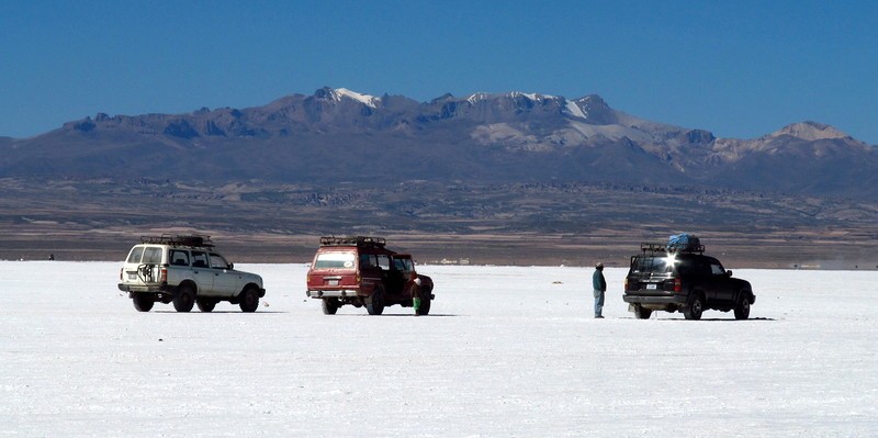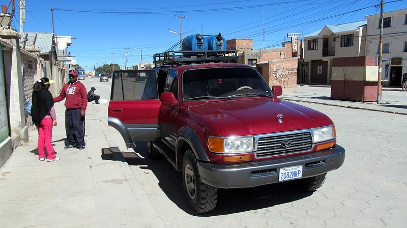 Назавтра нас уже ждала машина. Помимо нас и водителя, в ней было ещё четверо: пара из Боливии, но с низин (часть страны побогаче, её жители и жители высокогорья отличаются так же, как городские и сельские обитатели) и две девушки из Бельгии. Внутри джипа всё устроено так: сиденье рядом с водителем, потом три сзади, а уже совсем у заднего стекла ещё место для двоих, не очень высоких пассажиров, а то потолок задевает макушку. Мы все три дня менялись, так что все успели посидеть везде.