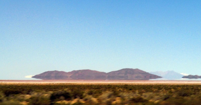 Дальше перед нами легла дорога на сам солончак, города и его мусорных окраин уже не было видно. Вокруг бегали ламы с бантиками на ушках, а далёкие вулканы, казалось, плыли над землей из-за сильного нагрева почвы. Водитель по дороге молчит, но они и не должны работать экскурсоводами, как, например, водители междугородних автобусов в Новой Зеландии. По-английски водитель говорит плохо, знает буквально несколько слов.