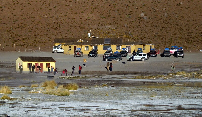 Ночевать здесь надо потому, что ещё до рассвета все выезжают на гейзеры, Sol de Maniana. На рассвете гейзеры выглядят зрелищней всего, да и в целом красота нереальная. Не далеко от гейзеров оборудован небольшой бассейн с горячей термальной водой, там также останавливаются все машины и многие туристы купаются.