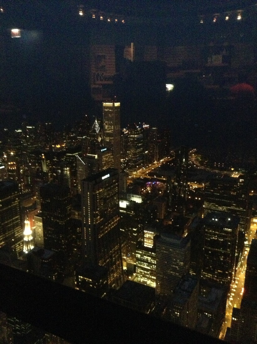 Willis Tower (Sears) - высотка, которая по праву займет первое место в списке. Вид во 103 этажа просто не сравнить ни с чем. Это нужно увидеть! Увидеть своими глазами! Смотровая площадка, Skydeck, полностью стеклянная, и некоторым даже страшно на нее становится, потому что когда сморишь вниз - там пустота! Для взрослых билет стоит 17$. Я поднималась в темное время суток и нисколько не жалению: огни города были очень завораживающими.