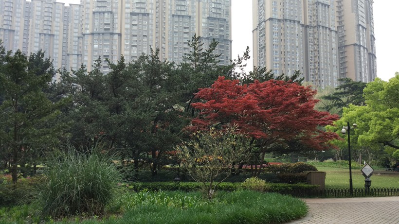 Мы были в апреле в Шанхае, но там уже были красные, желтые, розовые клены... Я честно говоря, не специалист по кленам, но это очень красиво, когда такое обилие зелени и есть яркие пятна кленов...