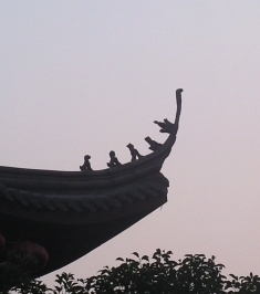 Решение: нанесение специального орнамента, росписи на скрепы, а по ендовам (это рёбра кровли, образованные за счёт стыков плоскостей скатов) поставить фигурки мистических существ (заступников). Это могут быть драконы, карп, человек на курице, животные, человек. Чем знатнее и влиятельнее сооружение, тем больше таких хранителей. Изгибы крыши тоже считаются формой отгоняющей духов. (Интересно, может духи как на фристайле, прыгают на крышу, оттуда с огромной скоростью несутся вниз и... Опаа - трамплин