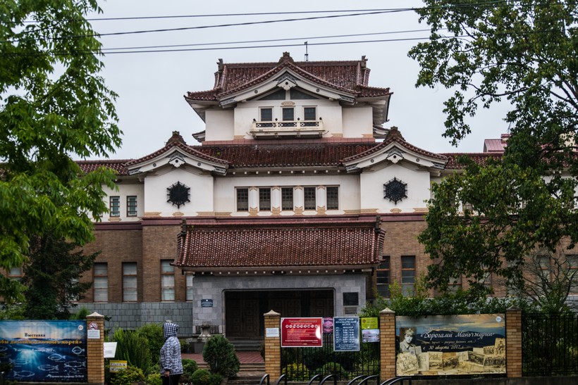 Музей Южного, в котором нельзя не побывать, - Областной краеведческий музей. Я люблю подобные музеи. В них в одном месте можно узнать всю историю данного места, посмотреть, а иногда и пощупать, экспонаты, какие-то местные фишечки, которые нельзя увидеть больше нигде. Так вот, краеведческий музей интересен, хотя бы, уже тем, что расположен в здании бывшего исторического музея японского города Тойохара в эпоху владения японцами южной части Сахалина, а это 1905-1945 годы. Изначально экспонаты хранились в музее г.Александровска (северный Сахалин). Когда же южная часть острова была возвращена, то музей переехал в японское здание Южно-Сахалинска.