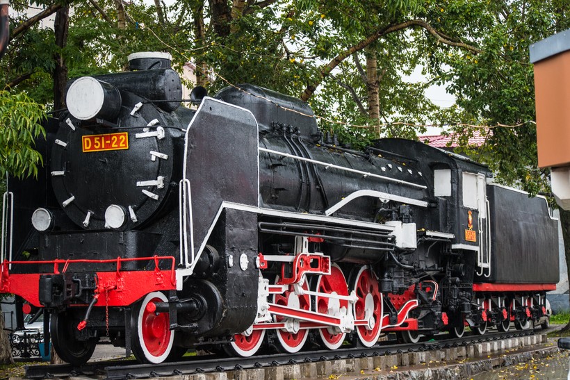 А вот еще один японский паровоз, стоящий перед ж/д-вокзалом: