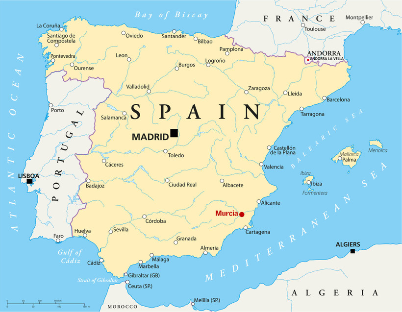 Между Испанией и Францией, поэтому автобусом лучше всего добираться из одной из них.