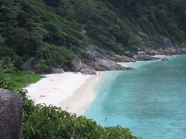 На Симиланских островах, белый песок и лазурная вода, там самые красивые пляжи в Тае. Попасть на Симиланы можно на спидботе с о. Пхукет, плыть примерно час. Путешествуйте!))