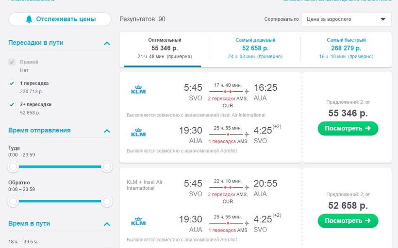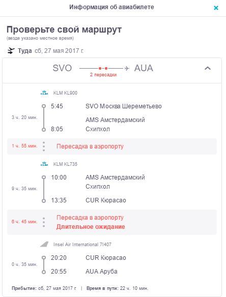 Прямого рейса из России нет, но вариантов не так уж мало. На сайте Арубского аэропорта Королевы Беатрис я посмотрел откуда вообще туда летают самолеты. Это и Нидерланды, и Лондон, и Нью-Йорк и еще кое-что, но я выбрал Амстердам(Нидерланды), потому что это самый дешевый вариант из всех.Билет с Москвы до Арубы и обратно с KLM-авиакомпанией ( рейс KLM KL900) нам обошелся примерно с 52600 рублей на человека с двумя пересадками: