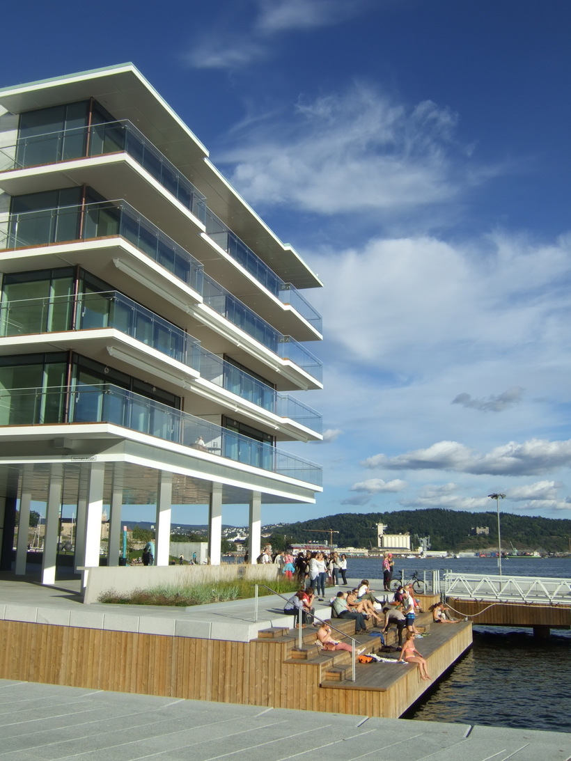 Можно купаться даже в самом Осло. Там средняя температура воды в июле 17,9 градусов, в августе 17.5. В конце июля может доходить до 21,9 (так было в прошлом году). Есть пляж на полуострове Бюгдой, есть искусственный пляж на оконечности квартала - продолжении Акер Брюгге. Там сделаны "берега" деревянные, похожие на трибуны стадиона, есть лесенки. Я видела, люди купались.