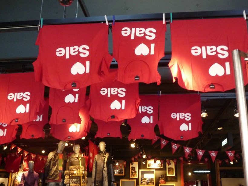 В сетевых магазинах (Bershka, H&M, C&A и т.д.) на протяжении всего года есть отделы с акционым товаром.