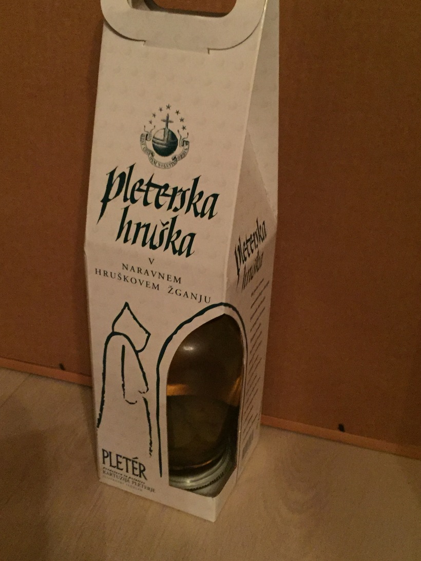 Опять хорошо упакованное стекло)). Бутылка грушевого самогона из монастыря в Плетерье (Ново Место). Тот самый случай, когда в Duty free, дороже, чем в магазине.