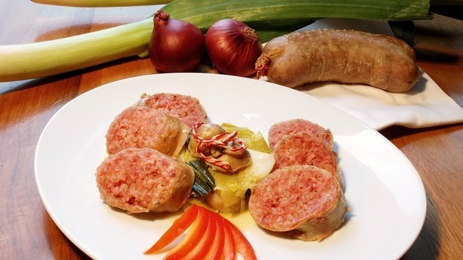 Традиционное блюдо Женевы - “Longeole” (свиная колбаска с фенхелем), которая подается с картофелем, приготовленным в белом вине.