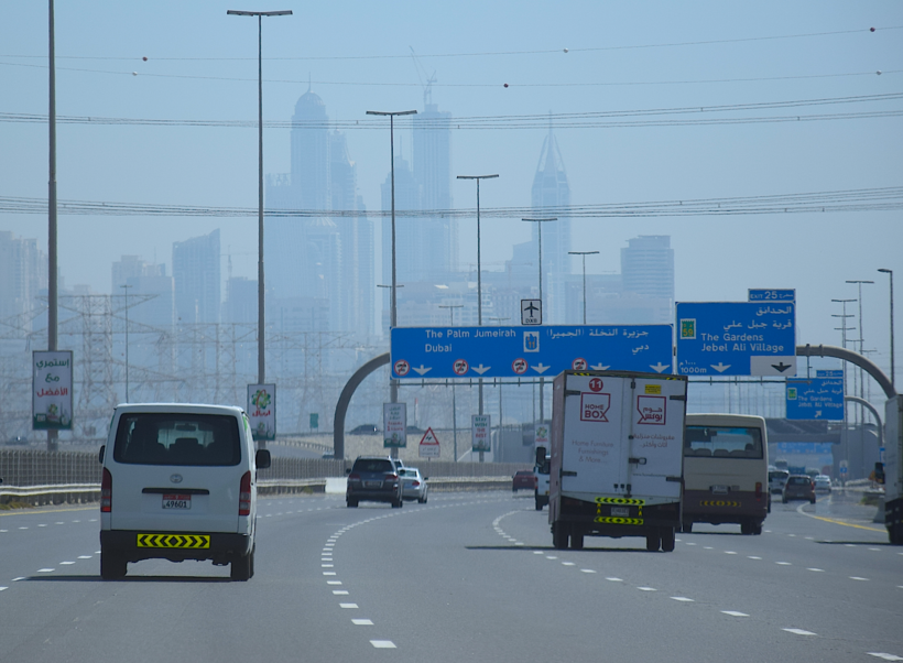 Путешествие на автомобиле до Дубаи будет проходить по трассам Е84, Е66 и Е11. Общее расстояние около 260 километров и в дороге придется провести от двух до трех часов. Везде присутствует качественное покрытие и дорожные знаками на арабском и английском языке.