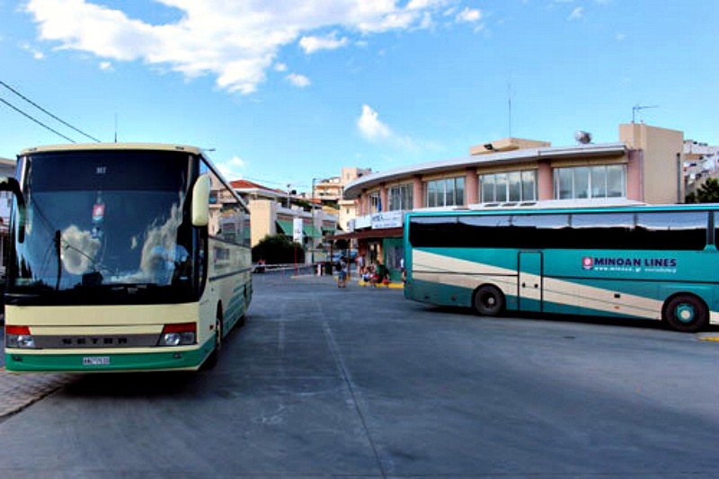 Междугородние автобусы можно узнать по цвету, они кремового или зеленого цвета. Все автобусы принадлежат различным частным компаниям, которые объединены государством в единый синдикат. Таким образом, транспорт на Крите частный, но полностью контролируется государством.