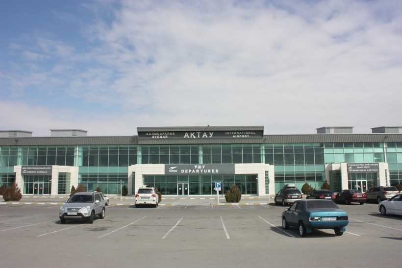 Аэропорт Актау располагается в двадцати километрах от города. Из центра доберетесь туда на такси за 20 минут и 2000 тенге (350 рублей). Снаружи воздушная гавань выглядит так.