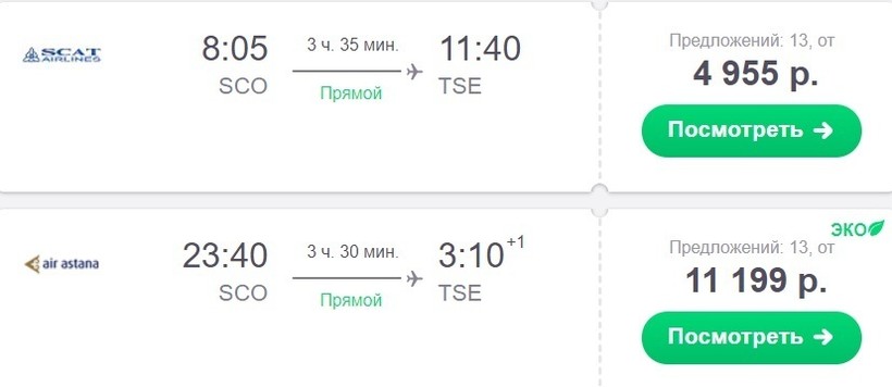 Билет до Астаны стоит от 7440 рублей (от 43620 тенге).