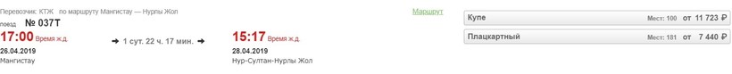 Ниже приведена информация о том, сколько часов вам потребуется, чтобы добраться от Актау до Нур-Султана (Астаны), а также приведена примерная стоимость проезда (средняя цена билета) на том или ином виде транспорта.