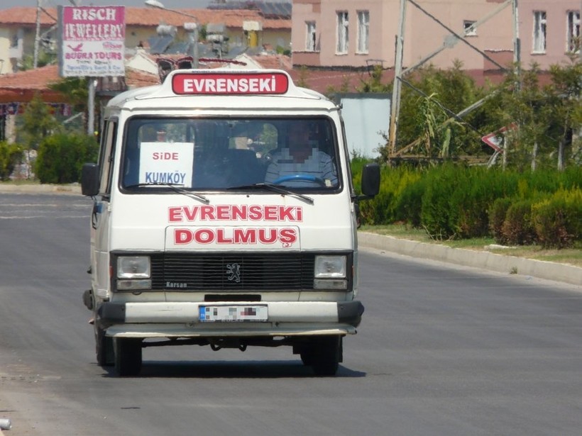 Еще можно доехать на долмушах, они тормозят на каждой остановке в Алании. Номеров у них нет, но на табличке в верхнем углу лобового стекла всегда указан маршрут автобуса на английском языке. Увидите надпись «Сиде» - смело садитесь. Можете уточнить направление автобуса у водителя при покупке билета. Долмуши ездят каждые 20 минут. И автобусы, и долмуши приезжают на автостанцию «Сиде». Автобусы в Турции удобные, а вот в долмушах с комфортом не очень, они маленькие и очень тесные.
