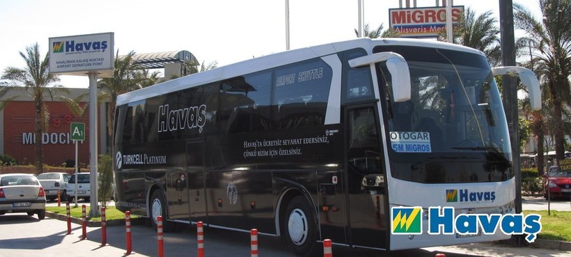 Самые дешевые автобусы, которые ездят из Алании до Измира, принадлежат компании «Havas». Они отъезжают с центрального автовокзала Алании пять раз в сутки. Первый автобус отъезжает в 07:20 утра, а последний рейс отправляется в Измир в 22:45 вечера. До Измира ехать довольно долго, почти 8 часов. Но автобусы удобные, можно поспать. На лобовом стекле автобуса должно быть написано «Измир» по-английски, автобусы в Турции ездят без номеров.
