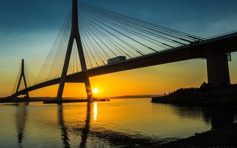 Мост через реку ГвадианаГраница никак не отмечена. Никакой пограничный контроль и осмотр проходить не придется. Единственный момент –- вскоре после пересечения моста нужно будет оплатить проезд по португальскому участку платной дороги. Стоимость португальского участка около 6 евро. В Португалии нужная дорога носит название А-22. Ее состояние хорошее, но на мой взгляд, похуже чем в Португалии.