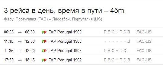 Приобрести билет можно либо в одной из авиакасс в Алгарве, либо через интернет на сайте http://www.flytap.com. Как правило, места есть на любой рейс, ведь цена билета в сравнении с поездом и автобусом достаточно высока.
