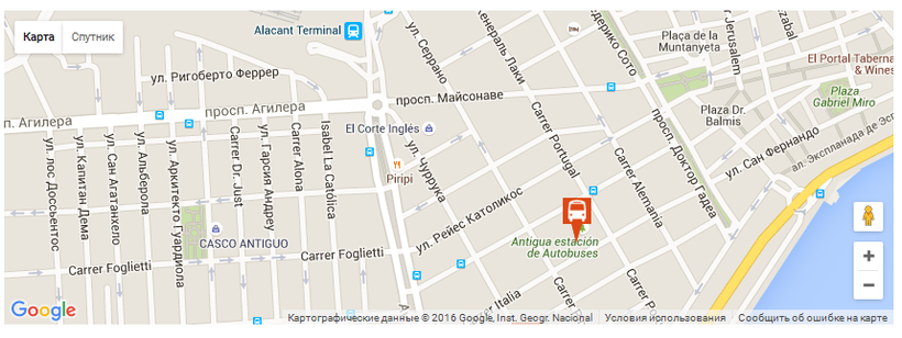 Несмотря на то, что железнодорожный вокзал в Аликанте расположен в самом центре города, найти его не так просто из-за отсутствия нормальных подъездных путей. Находится вокзал по адресу: просп. Саламанка, 3. Ниже прилагаю карту, чтобы вы могли наглядно увидеть месторасположение вокзала.