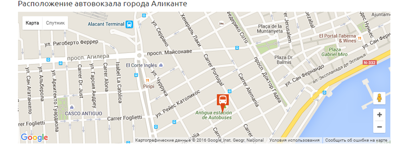Ниже прилагаю карту, где видно месторасположение автовокзала в Аликанте.