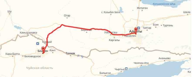 Между этими населенными пунктами всего лишь двести пятьдесят километров. Девяносто процентов пути нужно будет проехать по трассе А-2. Она просто шикарная, если честно, покрытие очень хорошее. Так что об этом не стоит в принципе беспокоиться. В народе данную трассу называют просто — «бетонка». Дорога проходит преимущественно по равнинной местности. Здесь от одной до двух полос в каждую сторону. По пути много небольших населенных пунктов, так что найти магазин, где можно купить воды и еды, не проблема. С заправочными станциями дела обстоят хуже, так что заправляйте полный бак в Бишкеке. На дорогу уйдет примерно 25 литров бензина. Перед въездом в город Алматы может быть пробка. Собственно для пересечения границы с Казахстаном (КПП будет в районе села Кордай) вам нужно предъявить свидетельство о регистрации транспортного средства, права, ваш паспорт. Досмотр машины, как правило, поверхностный. После этой процедуры вам поставят штампик в талончик. Также вам зададут вопрос о цели визита. Гражданам Кыргызстана и России на территории Казахстана можно находиться без оформления визы до 90 дней.