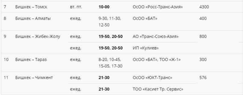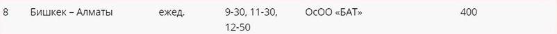 Билет по маршруту Бишкек — Алматы стоит 400 сомов (это примерно 2160 тенге или 375 рублей).