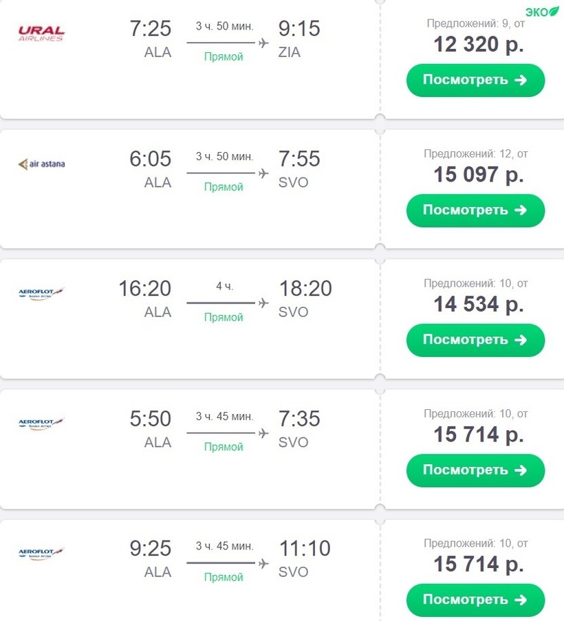 Ниже приведена информация о том, сколько часов вам потребуется, чтобы добраться от Алматы до Москвы, а также приведена примерная стоимость проезда (средняя цена билета) на том или ином виде транспорта.