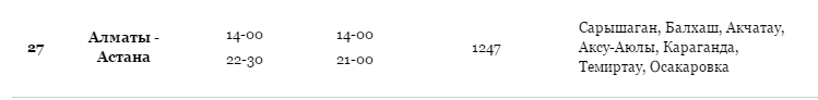 Ниже приведена информация о том, сколько часов вам потребуется, чтобы добраться от Алматы до Нур-Султана (Астаны), а также приведена примерная стоимость проезда (средняя цена билета) на том или ином виде транспорта.