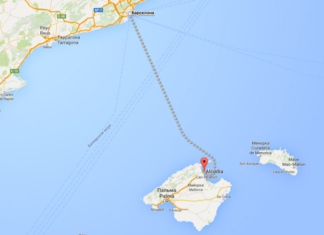 В дневное время из Алькудии отправляется паром компании Balearia. Он отплывает из порта в 14.00, прибывая в Барселону в 20.30. Мне кажется, что это не самый удобный вариант, так как придется искать место для ночевки. Хотя если вы планируете посетить Барселону в конце отдыха и отсюда отправиться домой, то такой вариант может подойти.