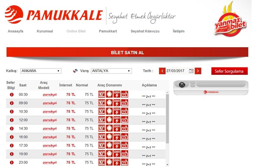 С шести утра до полуночи ездят между этими городами и автобусы фирмы Metro Turizm, в день – 6 рейсов. Точки отправления и прибытия те же, что и у их собрата Pamukkale. В автобусах присутствуют Wi-Fi и телевизор.