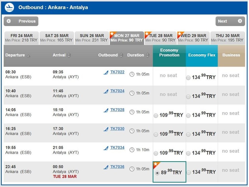 Самые дешевые билеты по промо-тарифу – 90-110 лир (23-28 евро).