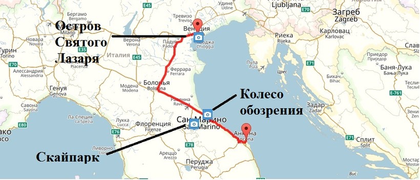Анкона — Венеция — маршрут на карте