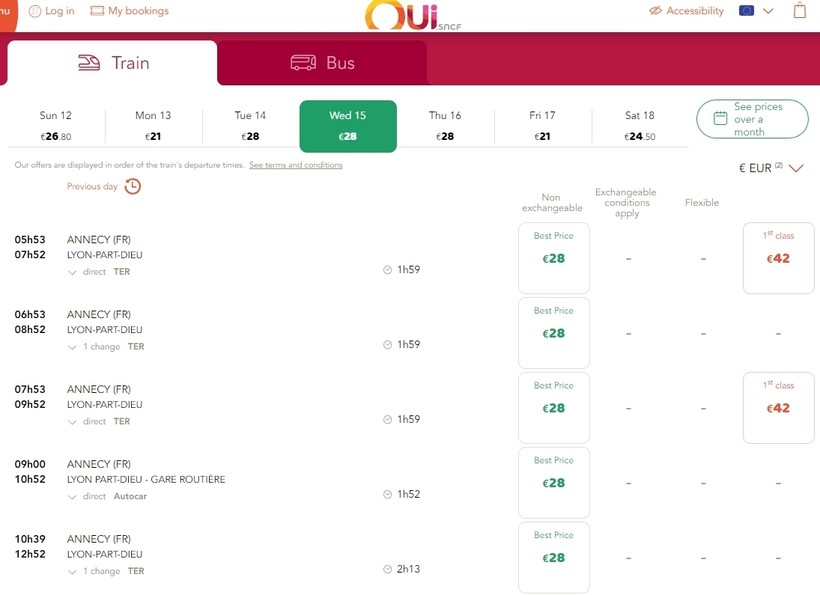Поездка на автобусе — самый бюджетный способ добраться из Анси в Лион. Стоимость билета составляет всего 9 евро (650 рублей).