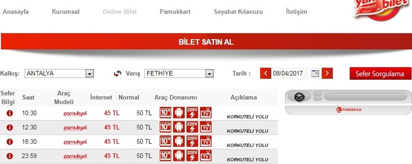 Даю также расписание рейсов и по другим перевозчикам. Вот время отправления автобусов Pamukkale.