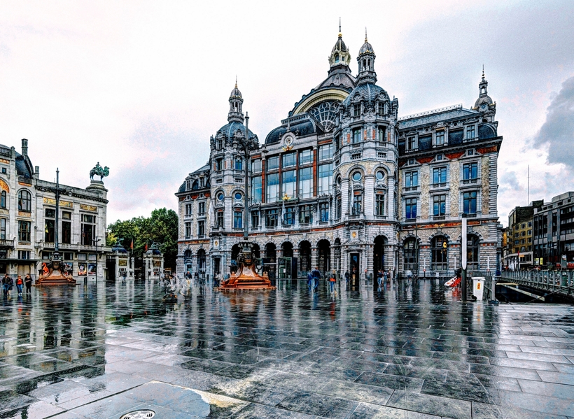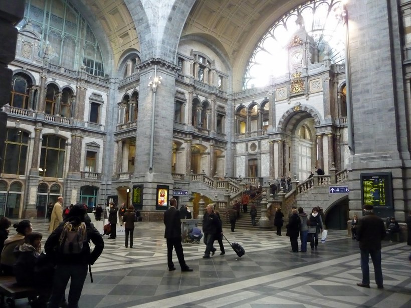 А вот так он выглядит снаружи. Железнодорожная станция Антверпена просто удивительна. Это здание даже входит в топ самых красивых вокзалов Европы.
