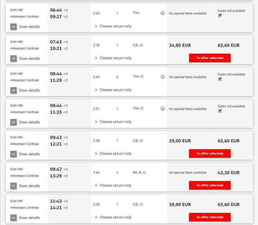 - В день поездки – от 29 евро на немецком и бельгийском сайте.