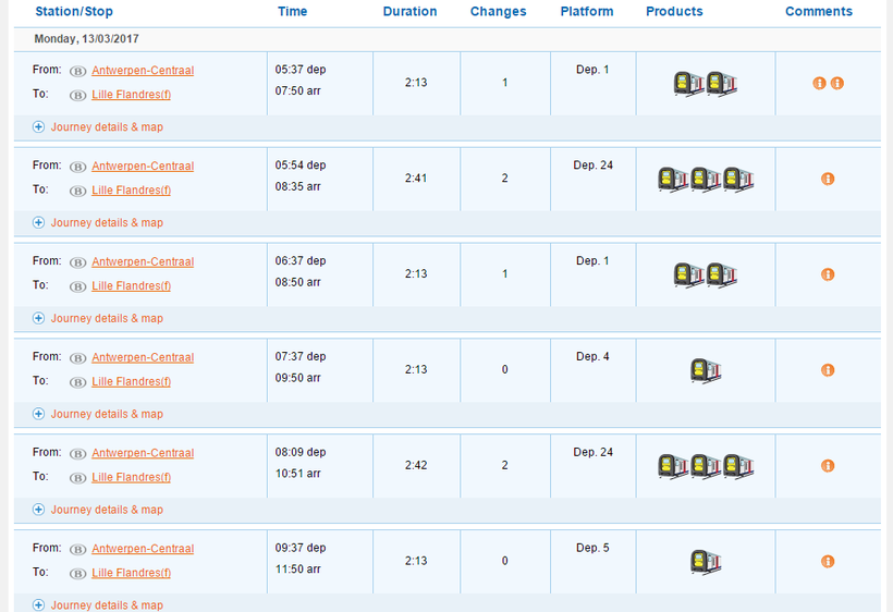 Вот так выглядят сайты с расписаниями: Бельгийские ЖД.