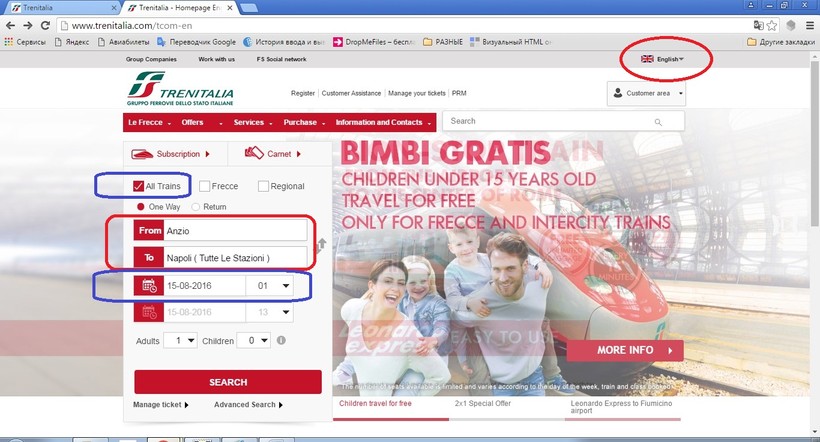 Так как ни я, ни муж, итальянский хорошо не знаем, для нас не очень удобно покупать билеты на вокзале. Мы предпочитаем заказывать их на сайте Трениталия.