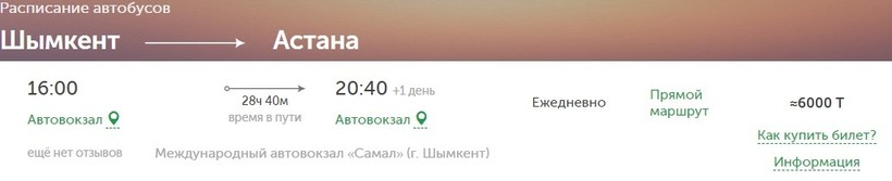 Также вы можете добраться до Астаны через Шымкент. Весь путь займет почти двое суток.