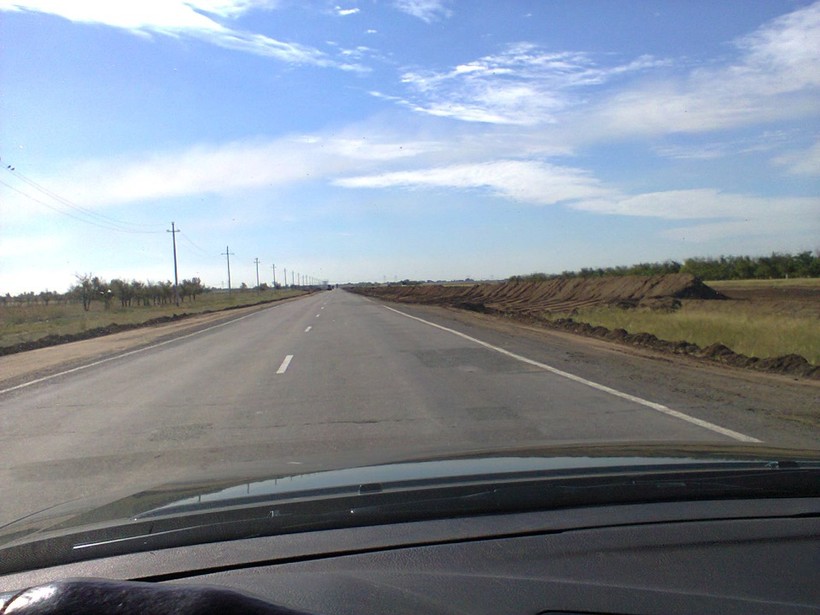 До города Экибастуз ехал по весьма сомнительной дороге. Местами отсутствовала разметка, покрытие с ямами и другими повреждениями. Далее дорога стала немного лучше, ехал по трассе А-17, но все равно до границы с Россией попадались время от времени плохие участки. Границу с РФ проехал в районе поселка Лозовое. При себе нужно иметь внутренний паспорт и документы на автомобиль.