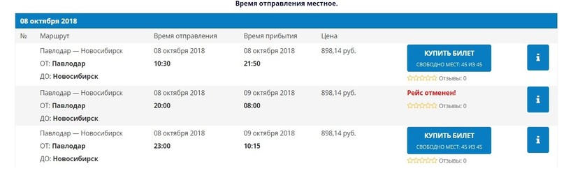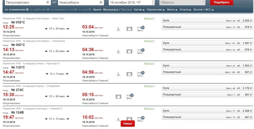Отправление со станции Астана-1 в половину девятого утра, а прибытие на вокзал в Петропавловске без двадцати минут два дня. Далее с этого же вокзала отправление без четверти три дня, а прибытие на Новосибирск-Главный в пять утра. Ехать чуть меньше суток.