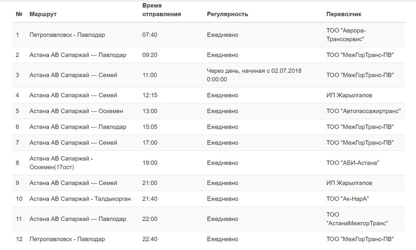 Есть и альтернативный вариант — поездка с пересадкой в Павлодаре. До этого города автобусы ездят каждые час-два на протяжении дня (с 07:40 и до 22:40). Отправляются все также с автовокзала Сапаржай, а прибывают на Центральный автовокзал в Павлодаре. Ехать 8-9 часов.