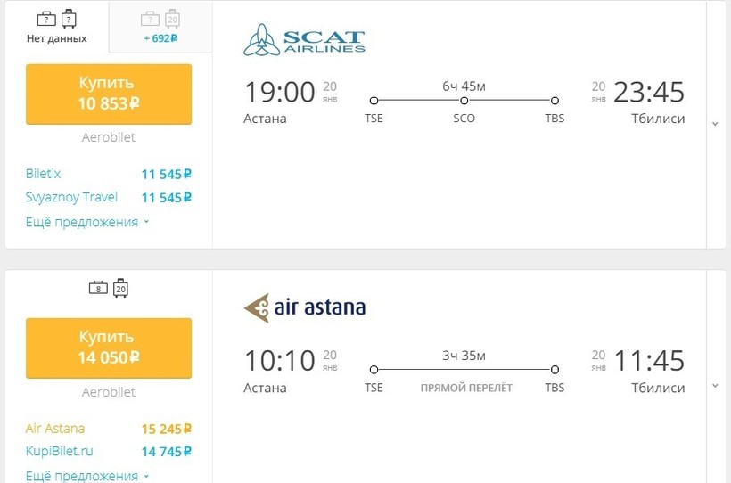 Прямые рейсы по маршруту Астана — Тбилиси осуществляются только по пятницам, воскресеньям и вторникам. Полет продлится три с половиной часа. Гражданские перевозки в этом направлении выполняет Air Astana. В остальные дни вы можете добраться с пересадкой, например, в Актау. Такое путешествие у вас займет минимум 7 часов. Перелет по маршруту Астана — Актау — Тбилиси осуществляет Scat Airlines.