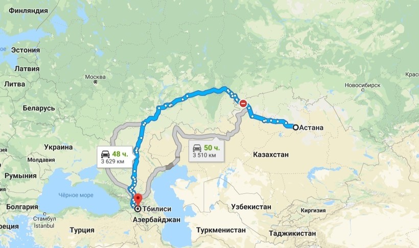 Нур-Султан (Астана) — Тбилиси — маршрут на карте